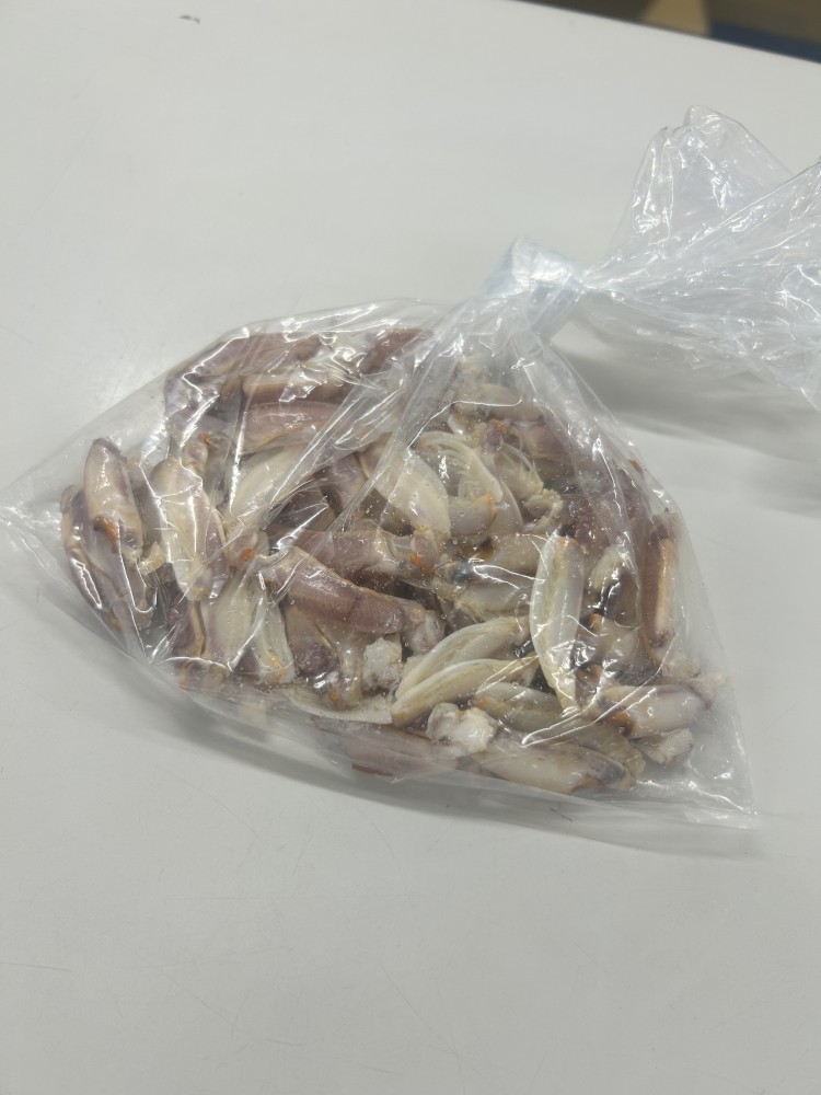 殻付きのままゆでられた爪を、手でつまんで中の身を取り出すと、