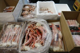 仲卸各店の店頭にカニの姿が目に付くようになりました。