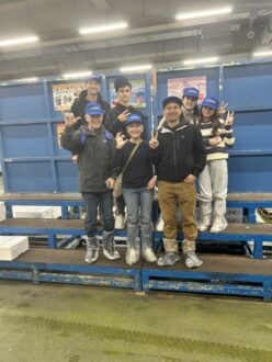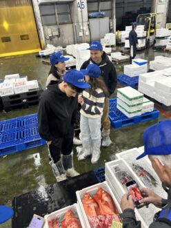 マグロの競り台でご家族そろって記念撮影も行い、市場ならではの特別な思い出を残していただくことができました。