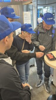 今回特に喜んでいただけたのが、角太商店でのまぐろの頭肉のお刺身の試食です。