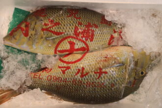 魚市場ブログ フエフキダイ 2026年04月09日 お魚ニュース 水温上昇の環境の変化で 入荷が多くなった魚に フエフキダイがあげられます。 今朝は魚走さんが 仲卸・鮑屋さんで魚を捌いているところに遭遇 MVI_6371 鱗がすでに引いてありましたから クロダイかと思ったら まさに上記のフエフキダイ(鹿児島・内之浦)でございました。 見るからに脂が乗ってそうで、垂涎ものでしたね。 これまたタイミングよく今が旬(春から夏)の魚に入ります。 前のページに戻る