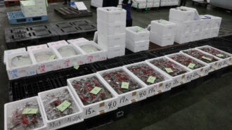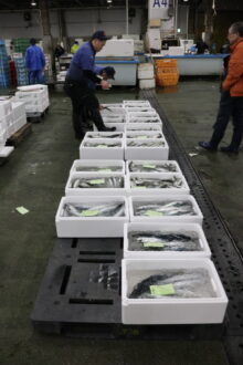 横浜市場の水産部の入荷はまだ少ない状況でしたが