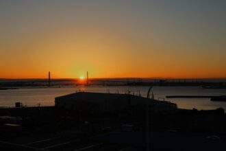 横浜港の夜明け前のブルーアワー