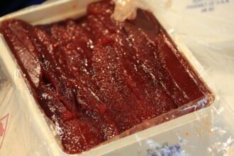 アラスカ紅鮭の筋子、ちなみに塩味です。