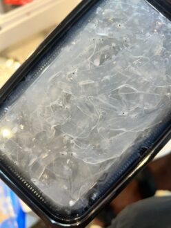 写真をよく見ると、体の中に黒い小さな点が見えますが、これはノレソレのです。体がとても透明なため、目の部分が特に目立って見えるのも特徴のひとつです。